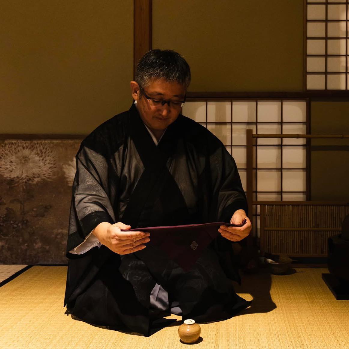 薄茶席:下御門奈良屋 席主:山本義博さん (茶道裏千家 陶芸家) 会場 奈良市西寺林町19-2 ☏0742-22-2880